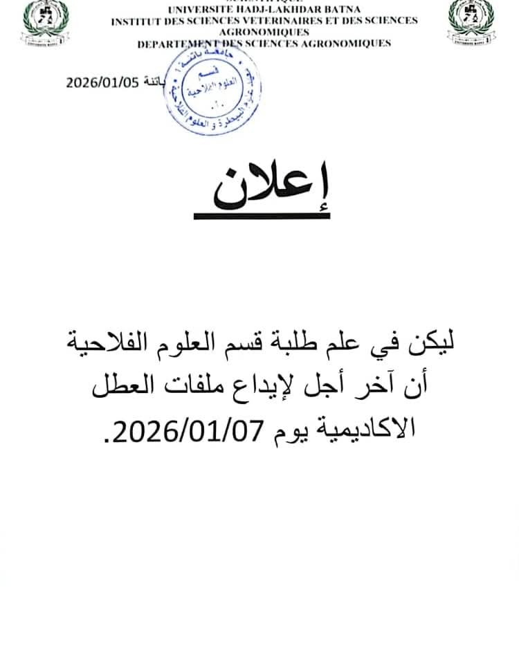 مستجدات قائة الطلبة المقصيين بسبب الغيابات ParNABIL-2025 8 janvier 20268 janvier 2026 قائمة الطلبة المقصيين بسبب الغيابات